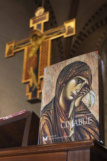 Bezeichnenderweise wählte die Kunsthistorikerin Miriam Fileti Mazza genau dieses Kruzifix von Arezzo als Ort für die Vorstellung ihrer Cimabue-Monografie. Dieser neue Band, erschienen in der angesehenen Menarini-Kunstbandreihe, schildert den Weg eines Malers, der «sich von den Fesseln der byzantinischen Tradition löste und eine neue Sichtweise auf die Welt eröffnete – und damit den Weg bereitete für die Kunst, die schließlich zur Renaissance führte». Cimabue schuf die Voraussetzungen für das Werk seines Schülers Giotto und legte den Grundstein für jene künstlerische Umwälzung, die wir Renaissance nennen: ein Wandel, der unsere Art zu sehen und darzustellen bis heute prägt.